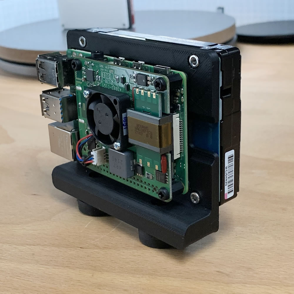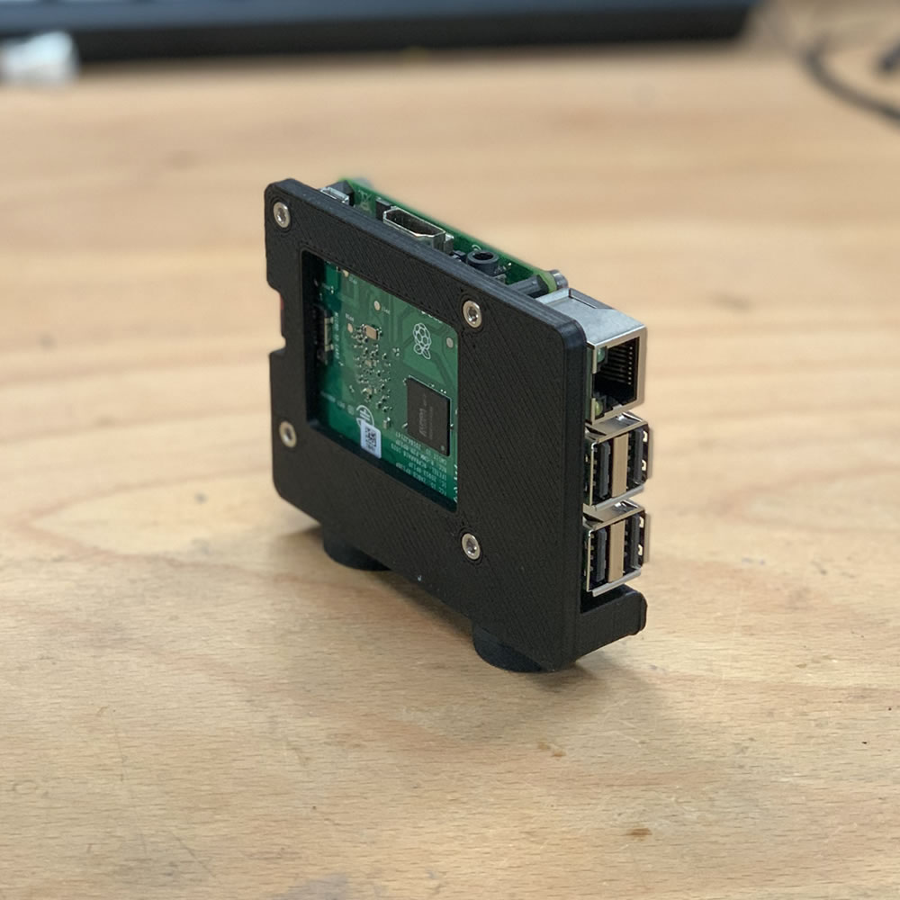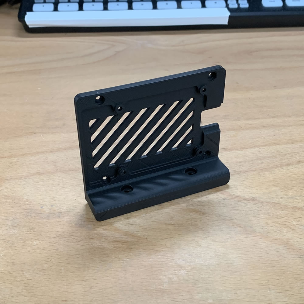 Some others apparently use a custom 1HE rack panel. But this makes it hard to access the modules. As my rack is still growing, I wanted a solution that leaves enough room for spontaneous arrangement changes while still making sure, it stays in a place, when I put it there without the cable moving the RPi around. I came up with a minimal solution, that does not take to much time to print and is rigid enough to hold the RPi in place while leaving enough openness for good airflow over both boards. equipped with 2 strong Neodymium magnets the holder can be places virtually everywhere in the rack: Inside the door, upside down under a shelf rack, vertically above the fans (good for heated tasks) or just simple standing upright on a lower shelf. Sometimes I even use it on the outside of my rack. The Mounting options are only limited by the metal surfaces I find in my shop. It is a great solution and therefore I want to share it with others. Free of charge.