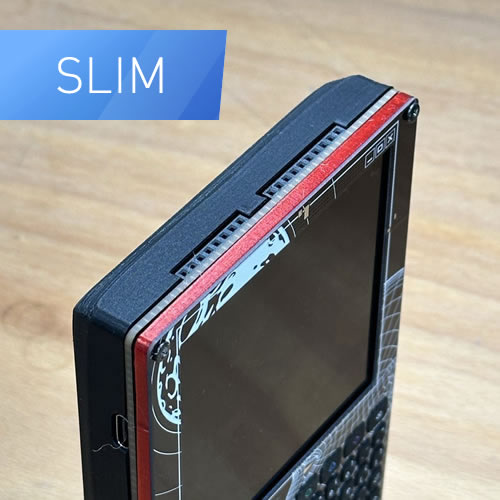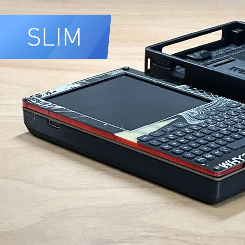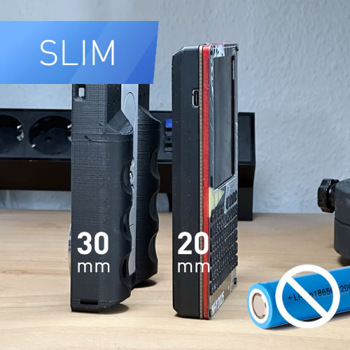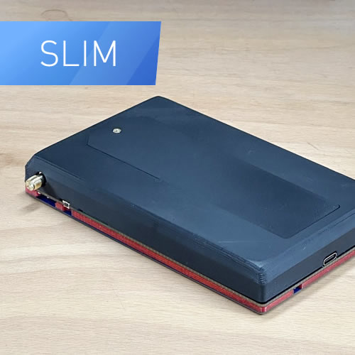 SLIM BODY - Minimal Size. It sits directly on the PCB and exposes the 3-Layer Badge (Front+Spacer+PCB). Because of the super slim design, using the 18650 is not possible - so USB only or using a pouch battery. The breakouts are limited to just the bare minimum. The Antenna is still broken out to make it a LORA Home Repeater/Basestation and not collect dust in your badge bin.