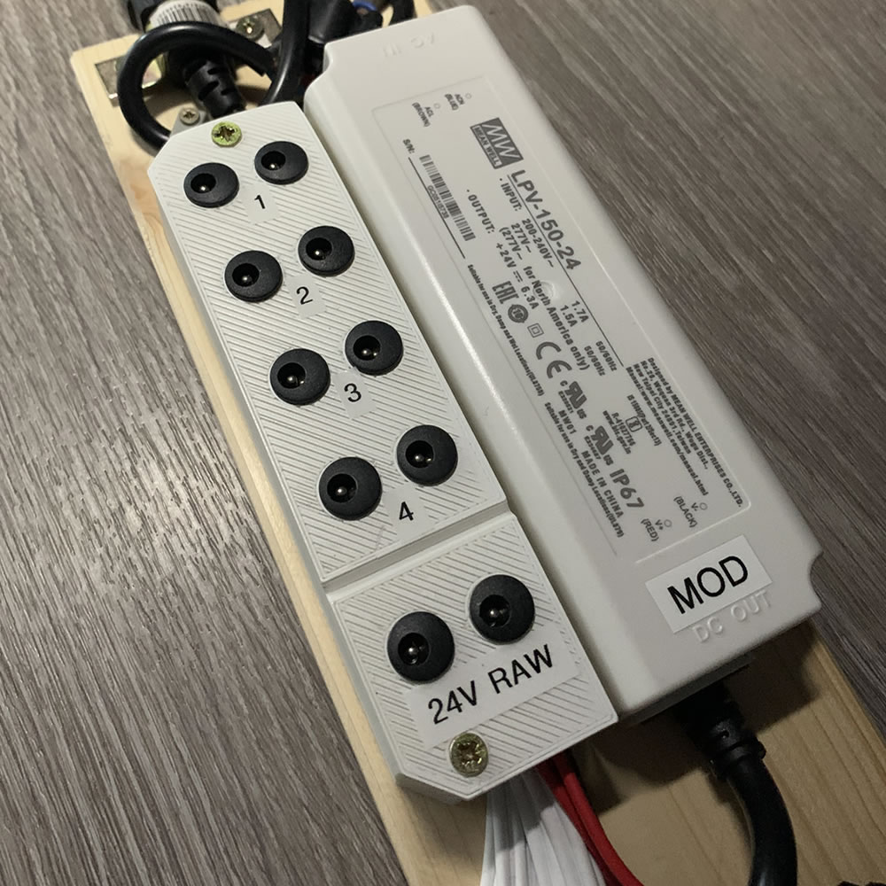This 24V power outlet has 5 channel with 2 ports each. Control up to 2 lights per channel or utilize the 2 RAW ports for various configurations to trigger lights.