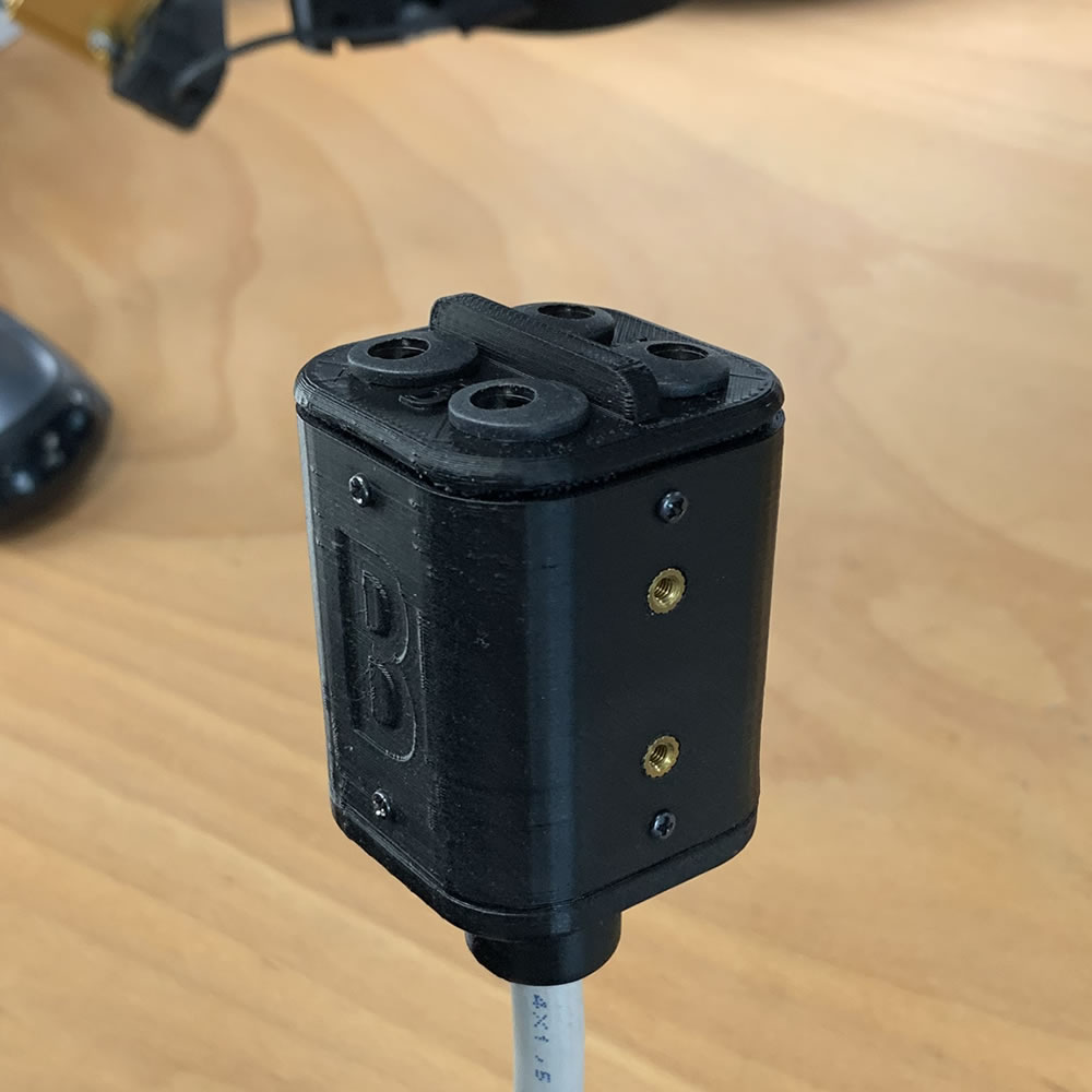 The more I worked with various designs for lights, I further and further needed more outlets to provide these lights with the needed power and channels to control them. This one is a very early version. It uses a very beefy cable to run long distances while providing a 2x2ch outlet for up to 400W.