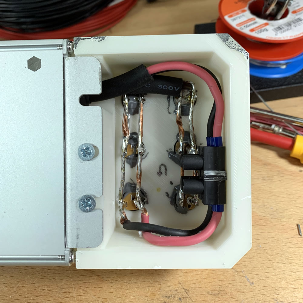 The PSU can provide up to 13A of power. We therefore should dimension the wires thick enough when doing a serial wiring. Or a thiner one when wiring parallel.