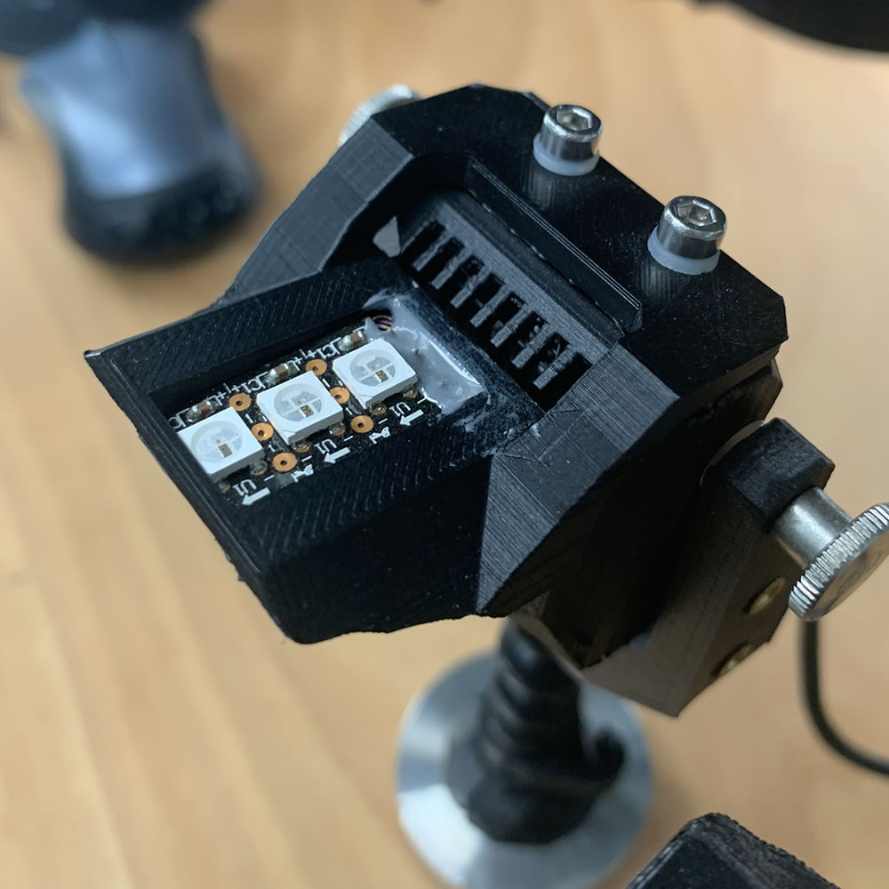 The cams I use are mostly table mounted. To avoid flares and reflections with the lights coming from the top, I gave some of my cams a small cap to shield them from undirected light. You can shoosed between a simple sunhood or one that can hold RGB-LED for a tally light option.