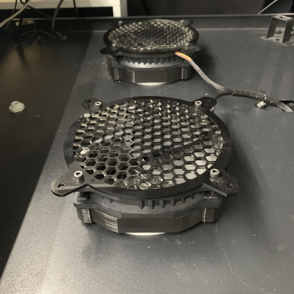 Bringing air in and out of my server rack is a main concern. Especially in the summer times. Mounting them on the rack was done by creating adapter-parts. This is the outlet-shroud adapter part sto mount the fan to my rack.