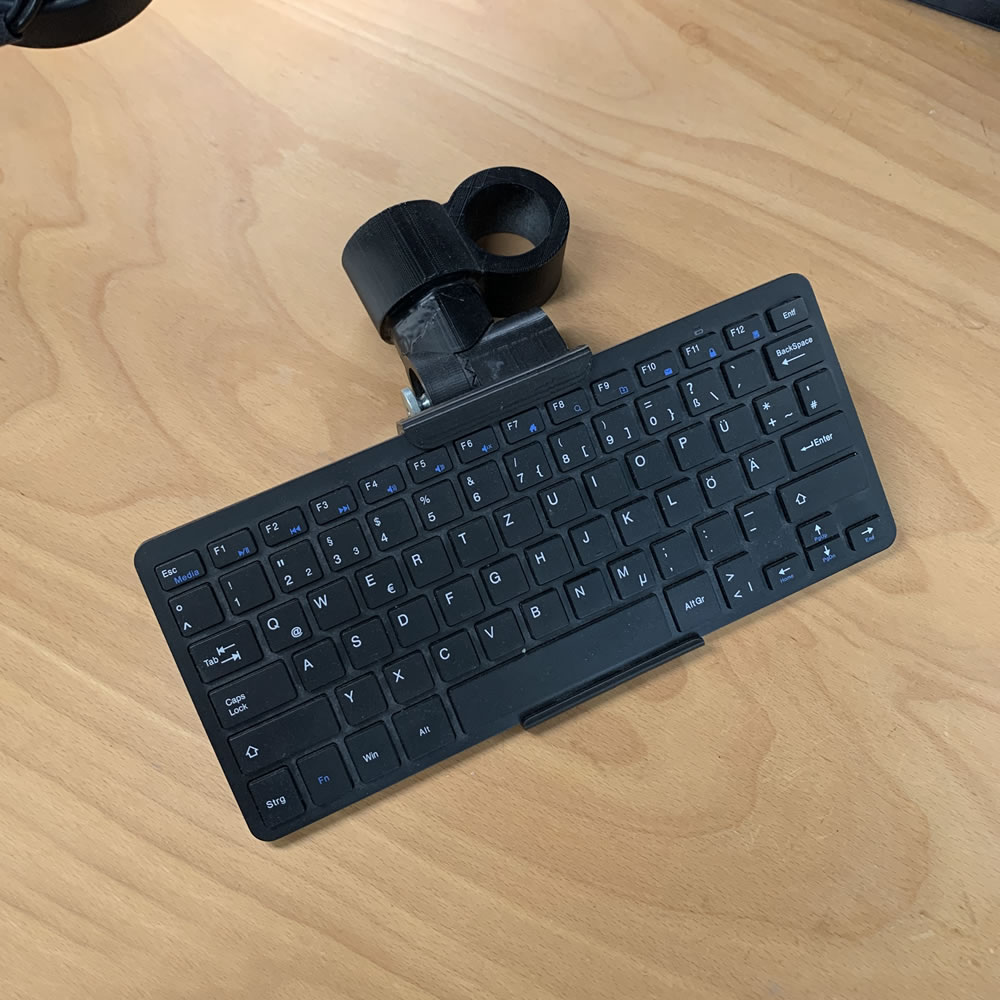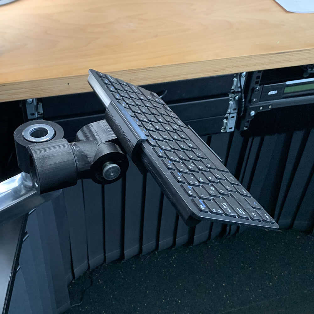 When your tablespace is scarce a keyboard is a waste of surface area. For my 3D printer PC I mounted evrything in a free floating style. This way I can keep the keyboard out of the way and detach it if I need it somewhere else.