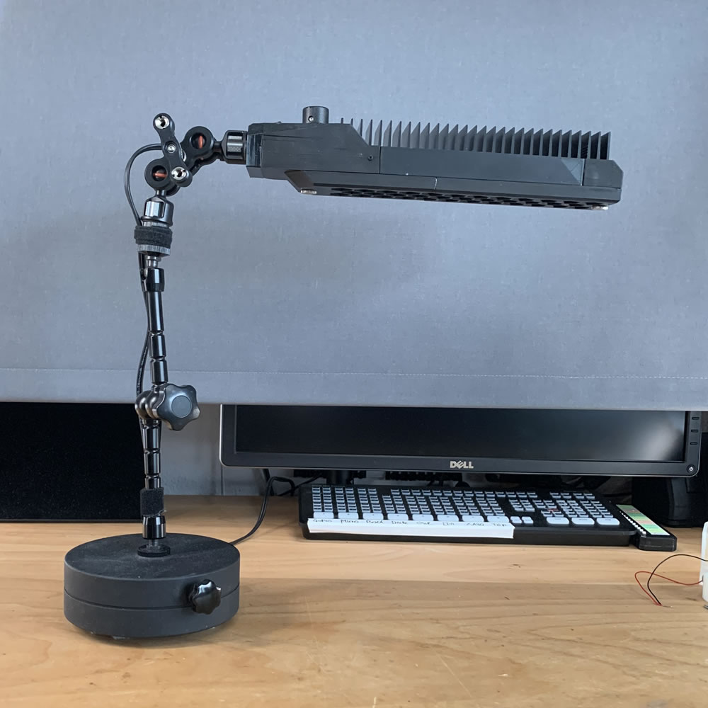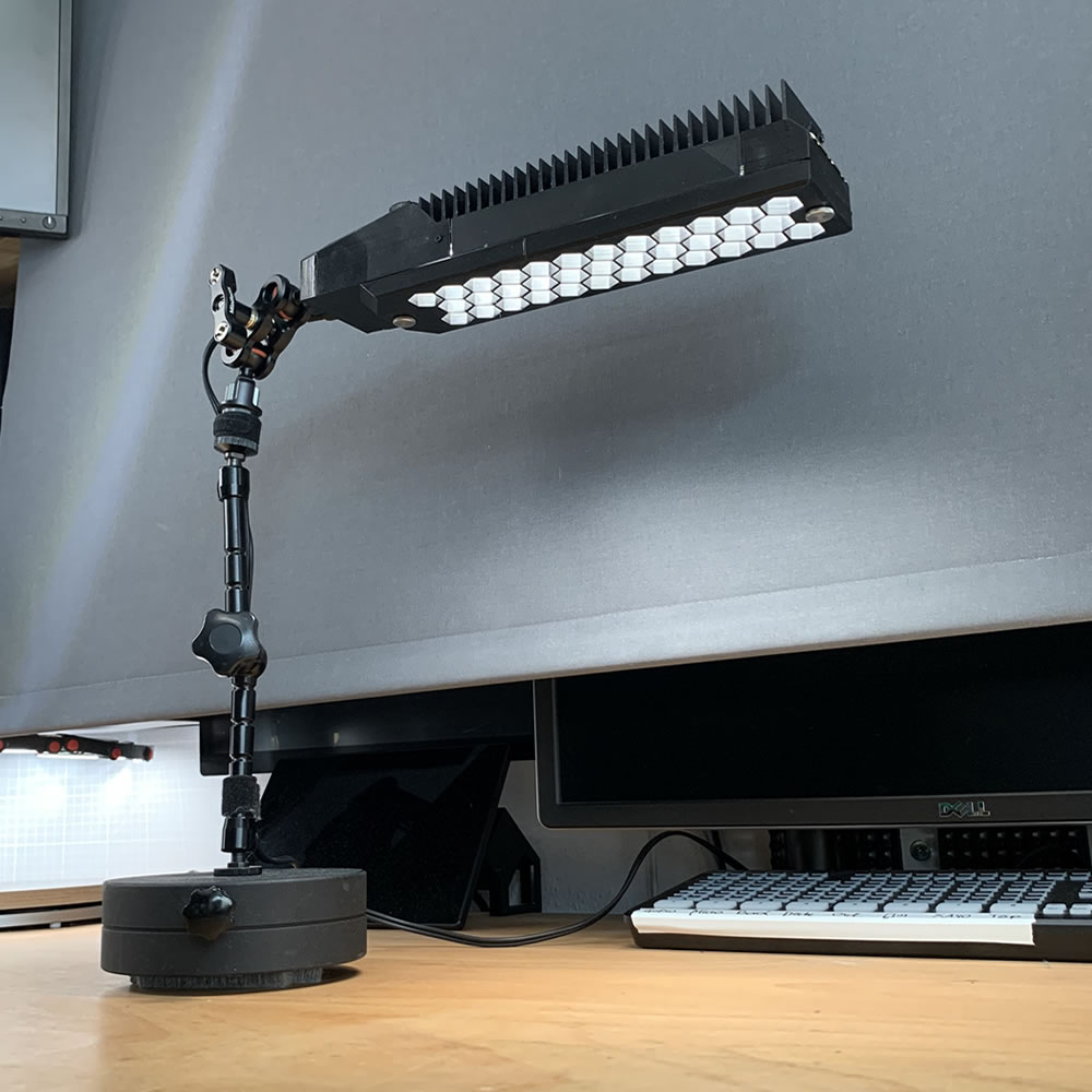 When it comes to working on your desk, you often need a lot of light and it sometimes feels like poking around in the dark until you realize that all you were missing was the correct amount of light. If you browse through my catalog, you might noticed that a couple of my models are related to the topic of light. I really need a lot of light. Light. LIGHT! Not only bright light but adjustable light. This model is not different to that idea.