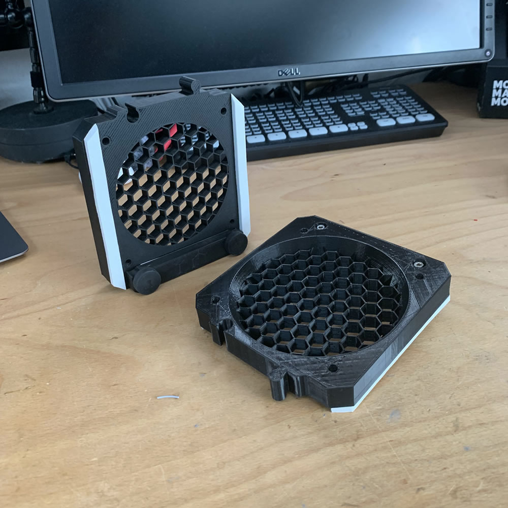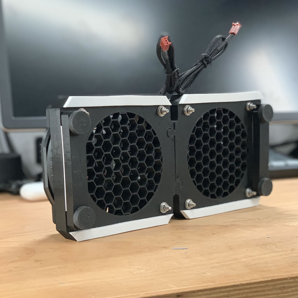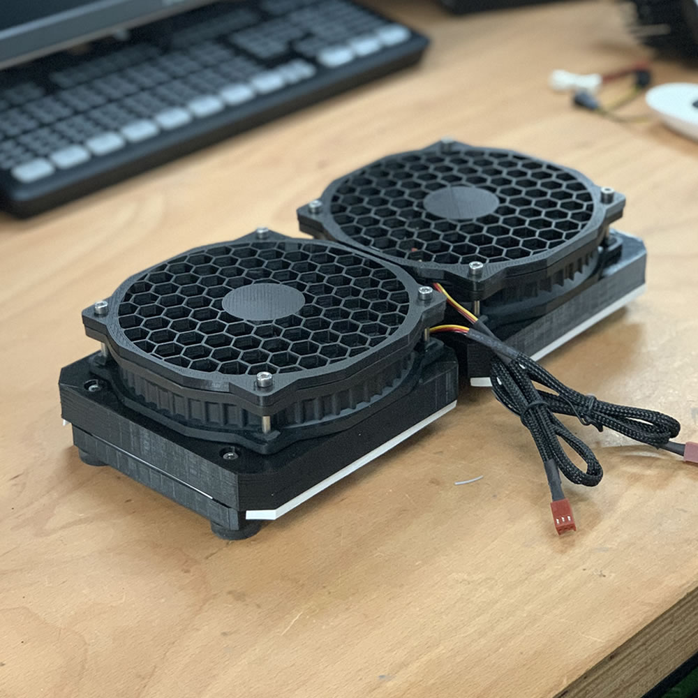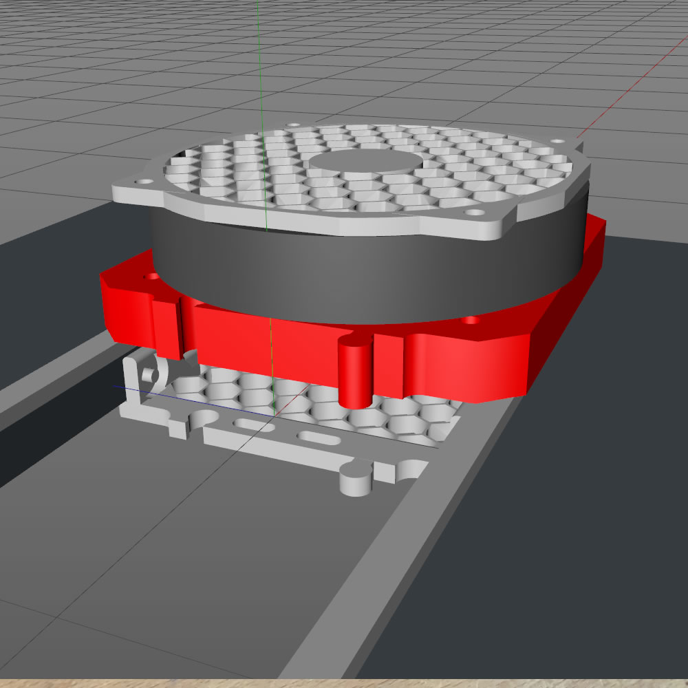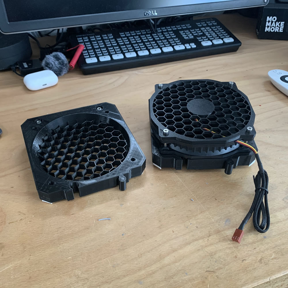 On top of the base plates, I mounted the fans. The baseplate (see above) also act as a shroud for the fans