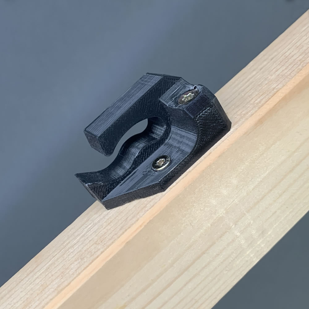 When you want to hang a VESA-Display to a wooden beam, you have several options. To keep the room needed to a minimum I came up with this parts, that allows me to mount a bracket to the wooden beam and then screw the bolt into the VESA-Display and easily mount the display by just placing it on the bracket and then slide it to the left. The small hill in the middle makes it impossible to slide back while it can still be dismounted in seconds if needed.