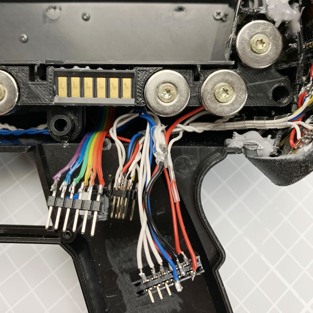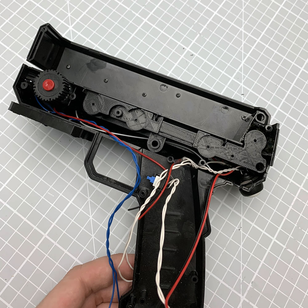 In addition to that, some external rail- or cheese-plates for mounting are a good idea, to attach lasers, lights, etc. to the device. I also added some additional switches, an OLED-Display, some high brightness flashing LED (for enemy confusion), several sensor e.g. to meassure the magazine capacity on knowing when to reload. I also added a Canon Battery Holder and a WiFi upload because... well, I can. Read up more about this in my Blogpost.