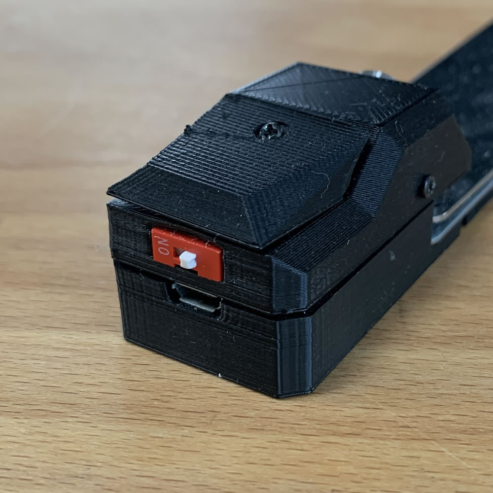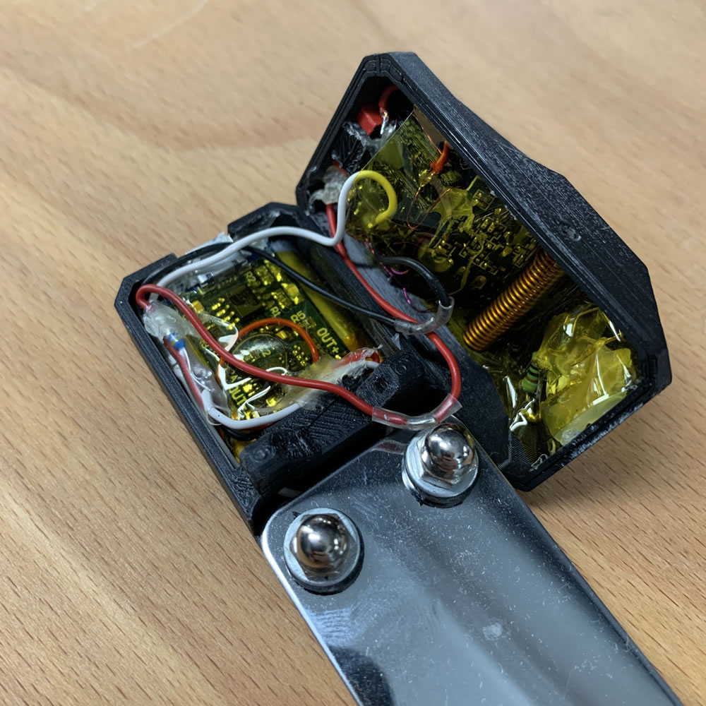 You could just go the the SW Foot Model and read the text here. This model serves the same purpose: Pressing button with the feet while your hands are distracted or on camera. This is a slim version. The electric hardware is the same but the button technique is a bit different. Also it mounts the ATTiny under a small hat.