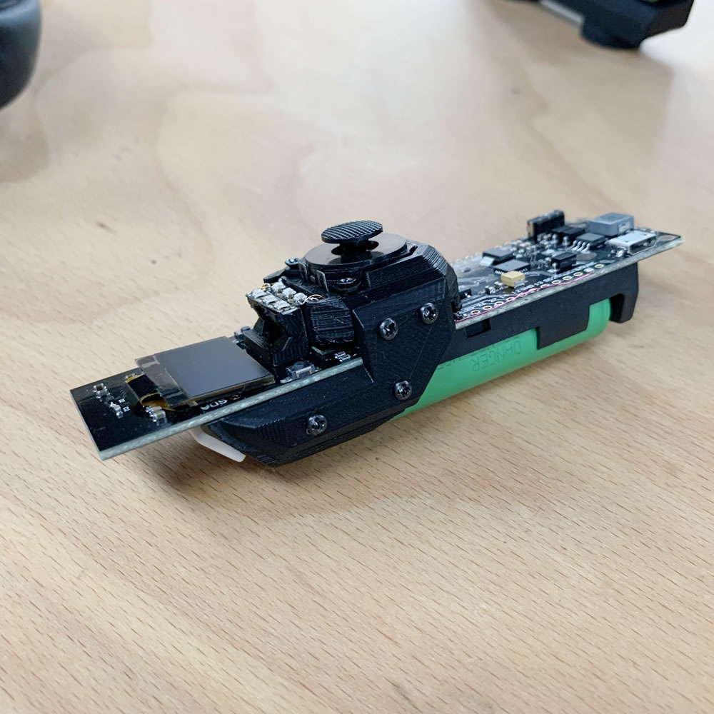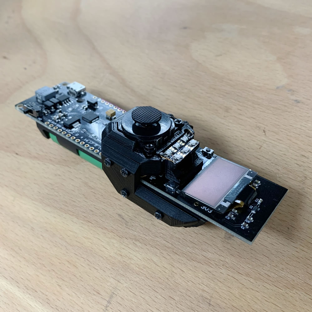 If you have a TTGO ESP32 OLED 18650 Module, you might notices, that it comes only with two buttons. One for resetting the device and one to reprogram. But none to actually interact with the OLED Screen when holding it in your hand. Even though there is an ideal positioning of the thumb and index finger along the device. The Model you can find below, is the chassis for a thumbstick with a index-finger button. The WS28 Micro RGB Led Strips are optional. The print applies seamless to the device, gives it a nice grip control and makes navigating the OLED as ease of use. You can either use a thumbstick or a Joystick. For my Model I chooses the Sony PSP styled thumbstick to keep a narrow profile of the device. The 4pin Output is basically 2 analog ranges to measure and can easily be converted to on screen x and y coordinations to jump through menus or select options - for whatever needs you have. The printable parts make this device a very capable tool for all remote controlled cases where a display for details is necessary.