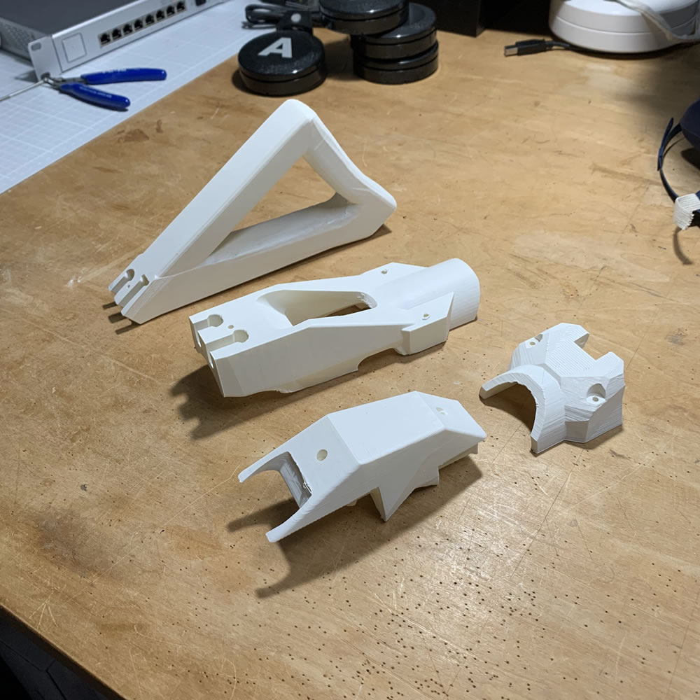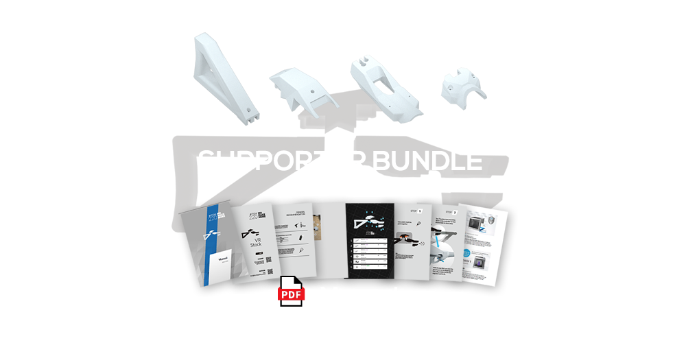 The stock consist of 4 pieces that fit seamless together, forming a strong rigid attachment that will withstand your most intense VR experiences.